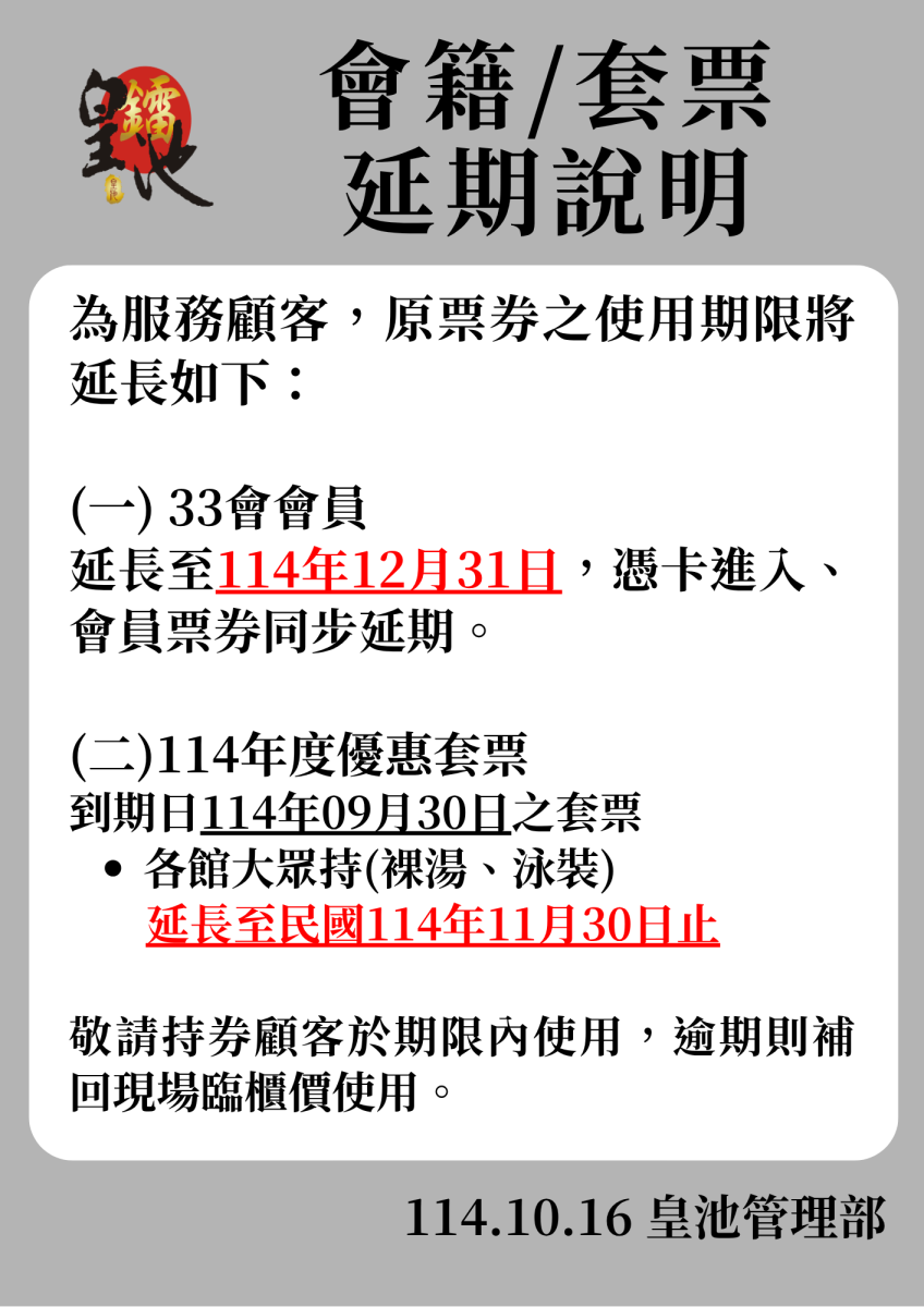 [114年會籍及套票延長說明、營業時間] *10/16更新