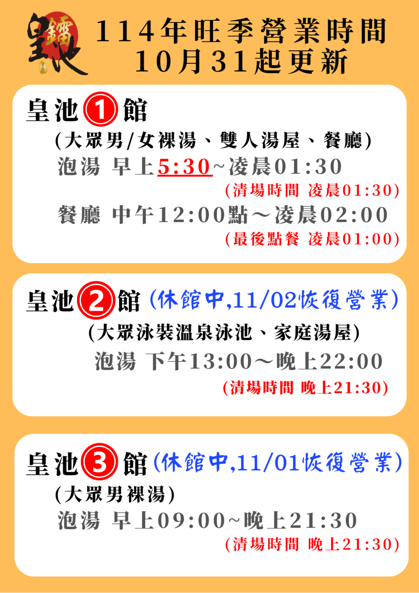[114年10月31日起營業時間異動/最新消息]