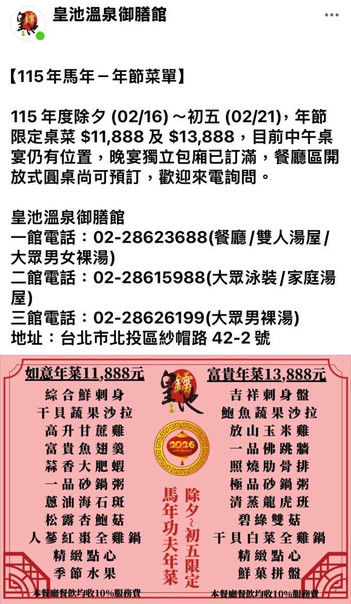 115年春節桌宴菜單